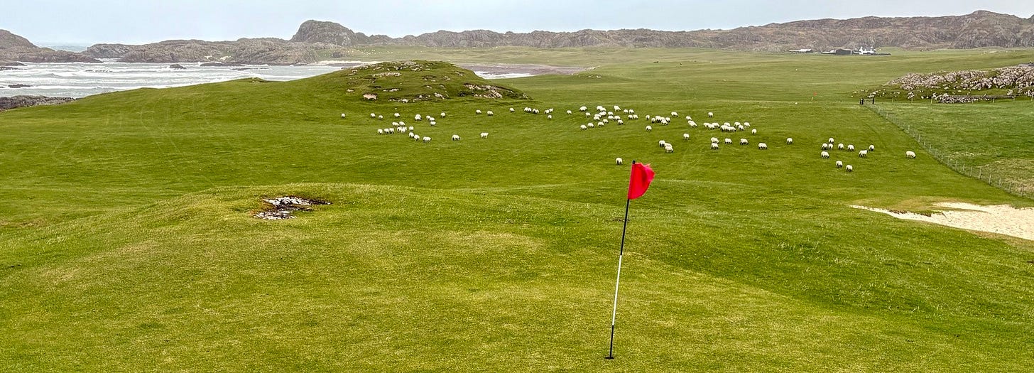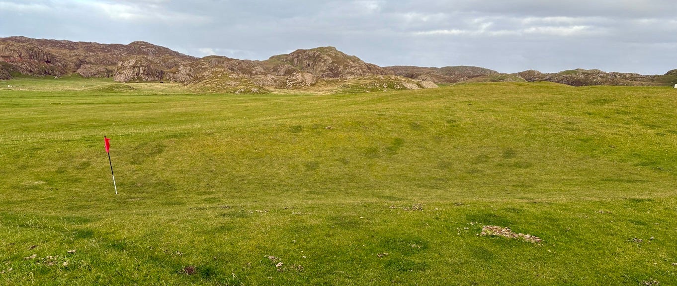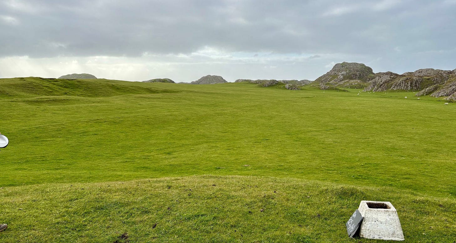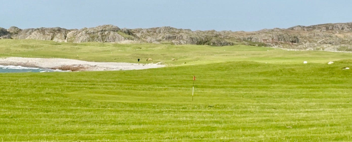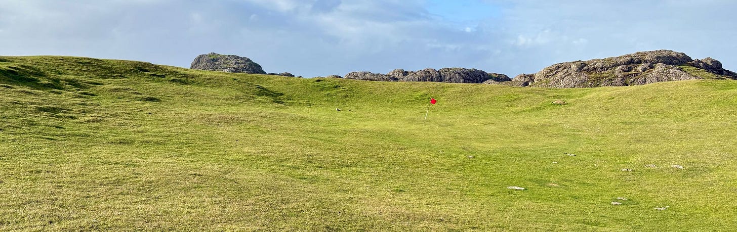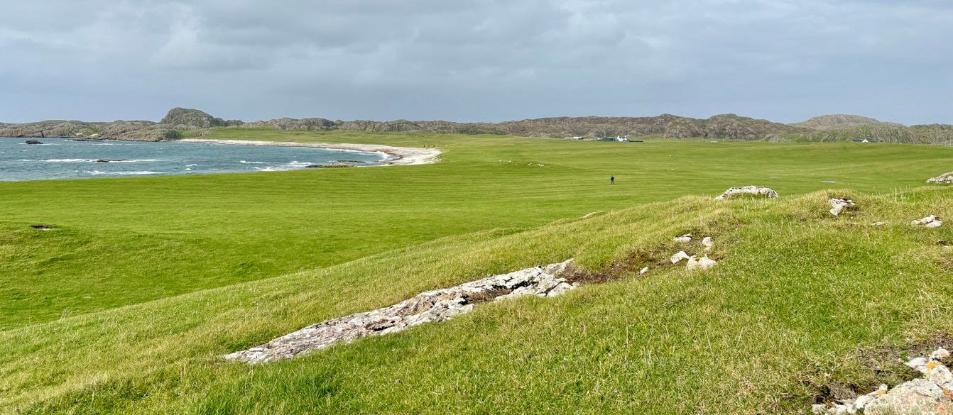 There are a few bonafide tourist attractions on the island, and most of the visitors are pilgrims visiting the Iona Abbey. But the main attraction if you ask me is the island’s natural beauty. There are plenty of sandy beaches you’ll have all to yourself if you’re willing to walk a bit. Hiking up mountains and through valleys was genuinely delightful. One afternoon we went to see a concert, which was just a musician that lives on the island and plays small shows for free at the village hall. But I came here for the golf course.
