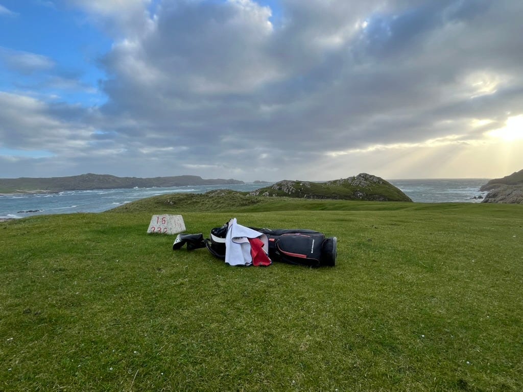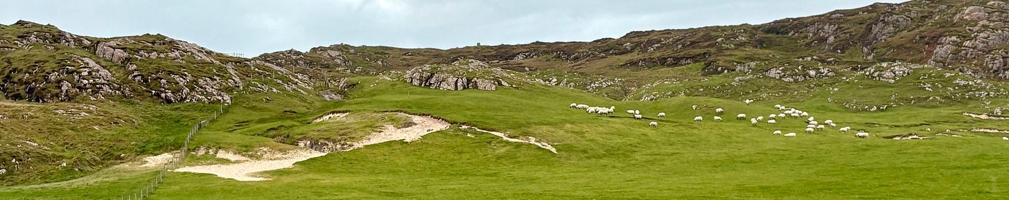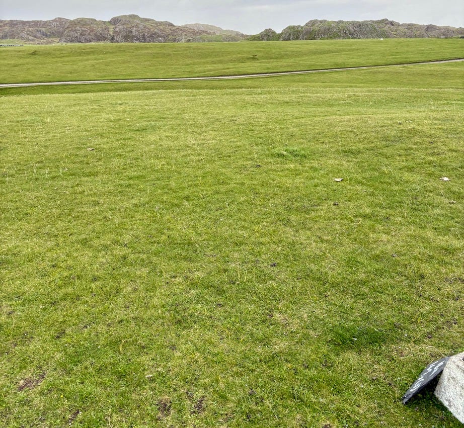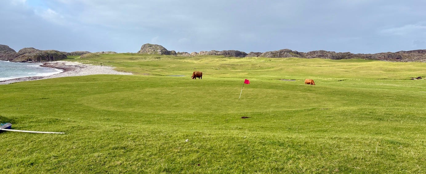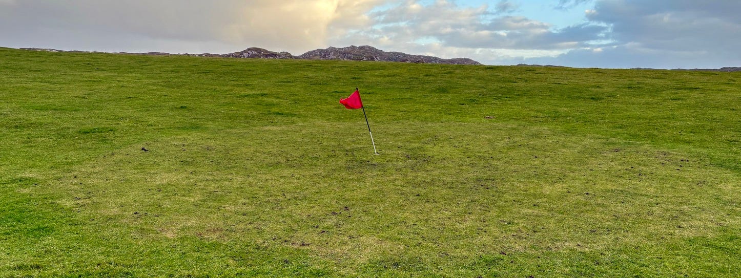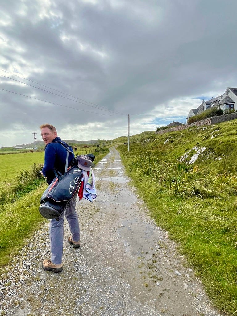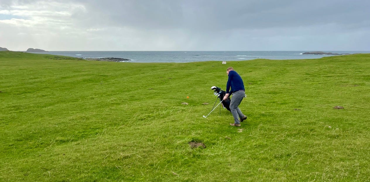 There are a few bonafide tourist attractions on the island, and most of the visitors are pilgrims visiting the Iona Abbey. But the main attraction if you ask me is the island’s natural beauty. There are plenty of sandy beaches you’ll have all to yourself if you’re willing to walk a bit. Hiking up mountains and through valleys was genuinely delightful. One afternoon we went to see a concert, which was just a musician that lives on the island and plays small shows for free at the village hall. But I came here for the golf course.