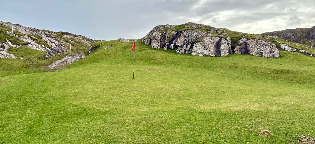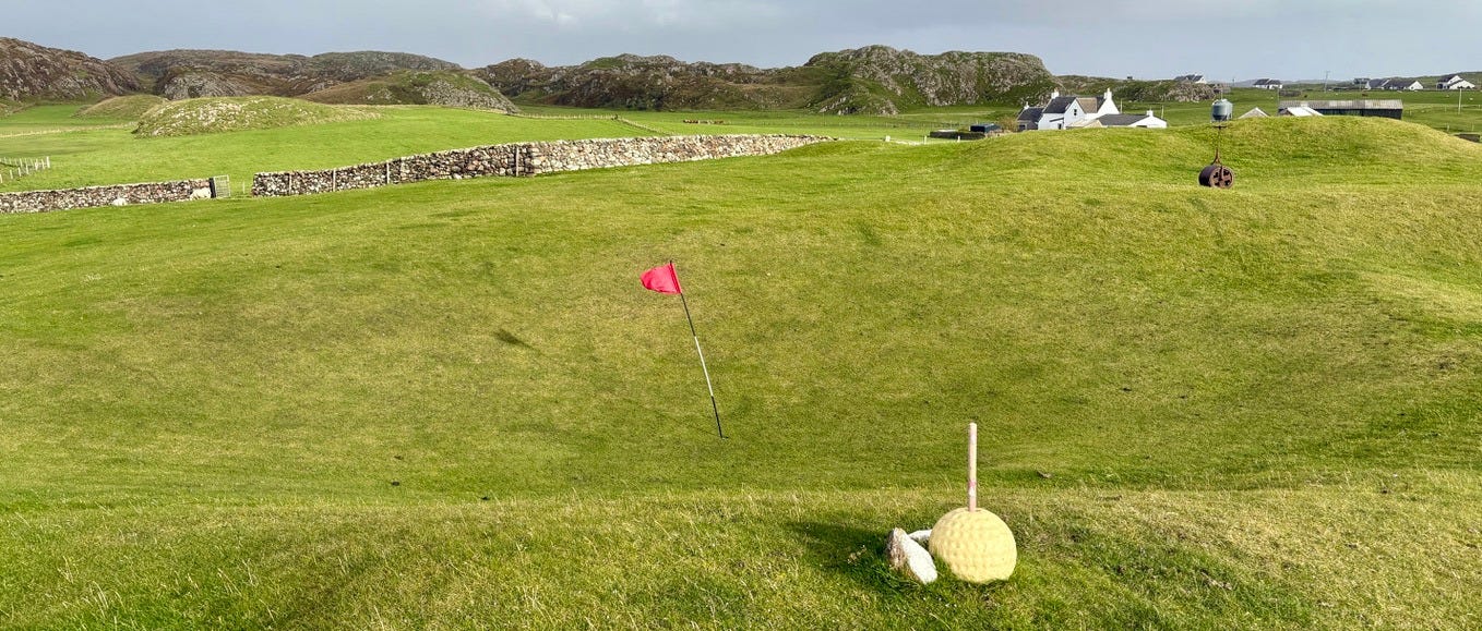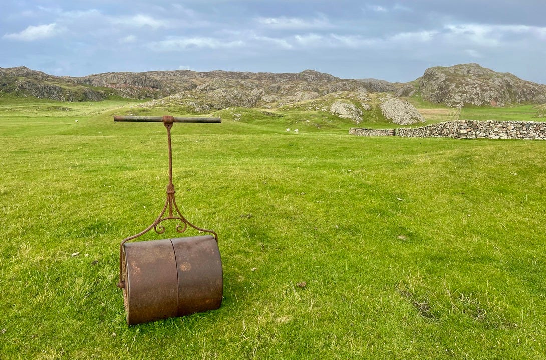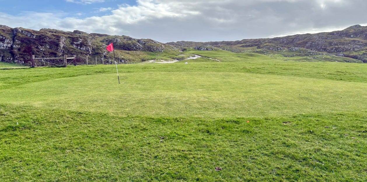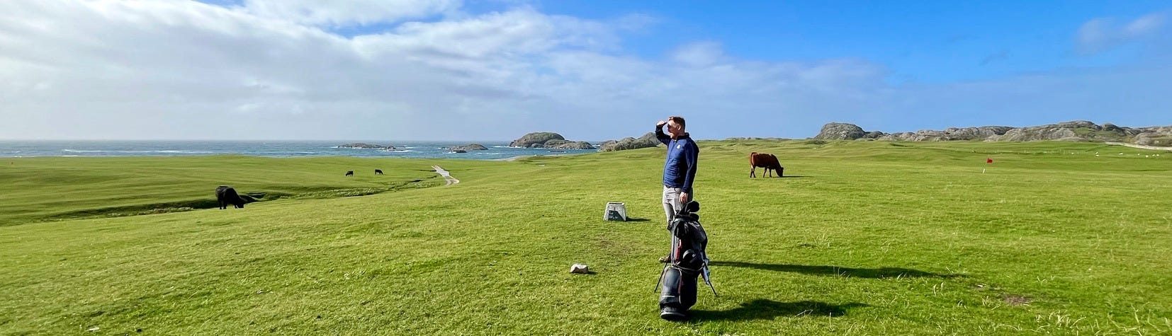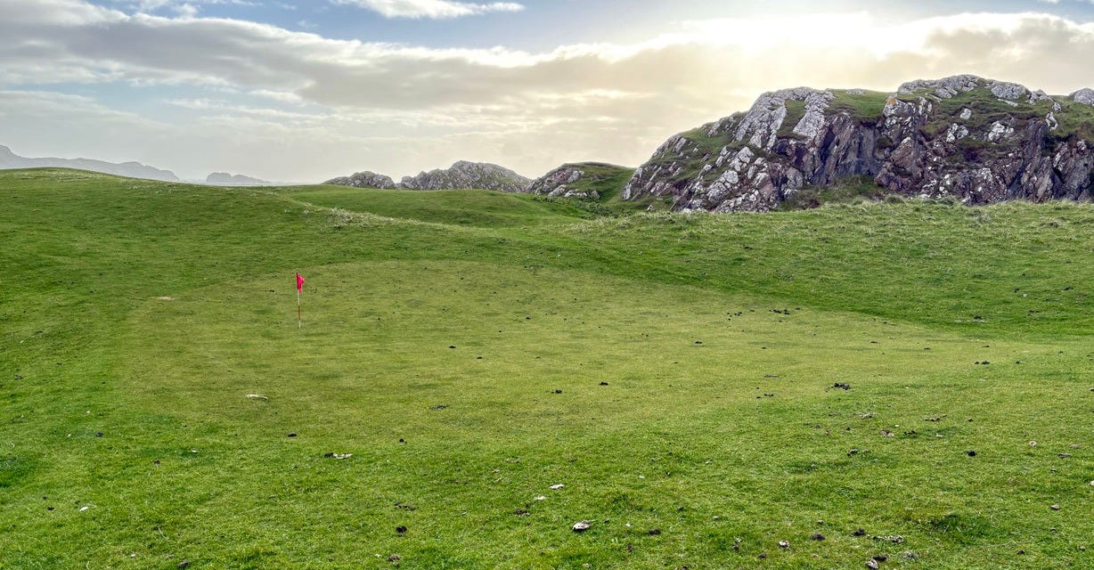 There are a few bonafide tourist attractions on the island, and most of the visitors are pilgrims visiting the Iona Abbey. But the main attraction if you ask me is the island’s natural beauty. There are plenty of sandy beaches you’ll have all to yourself if you’re willing to walk a bit. Hiking up mountains and through valleys was genuinely delightful. One afternoon we went to see a concert, which was just a musician that lives on the island and plays small shows for free at the village hall. But I came here for the golf course.