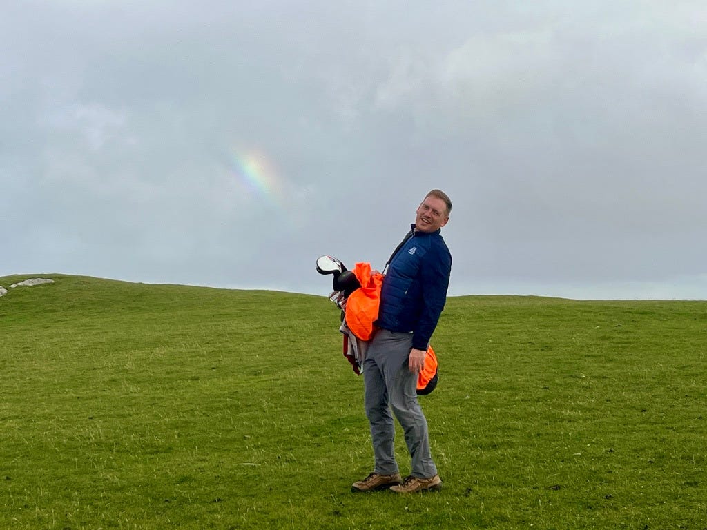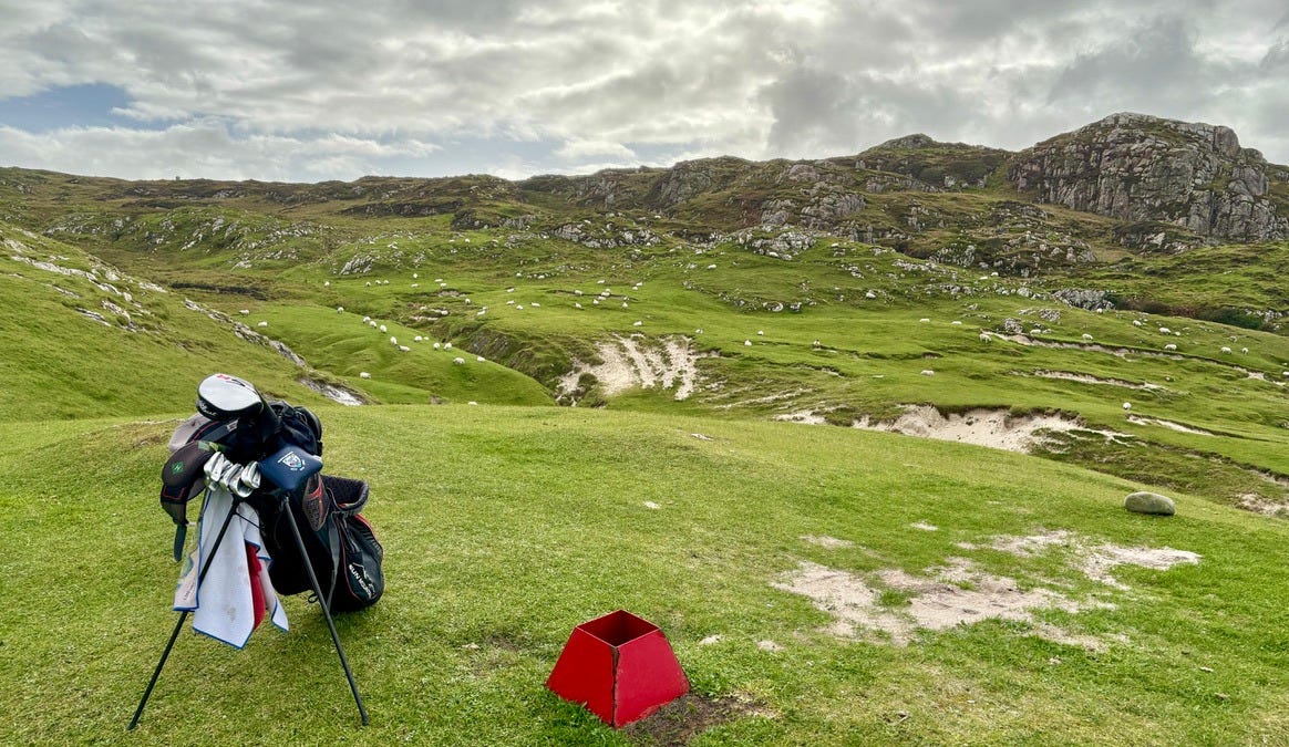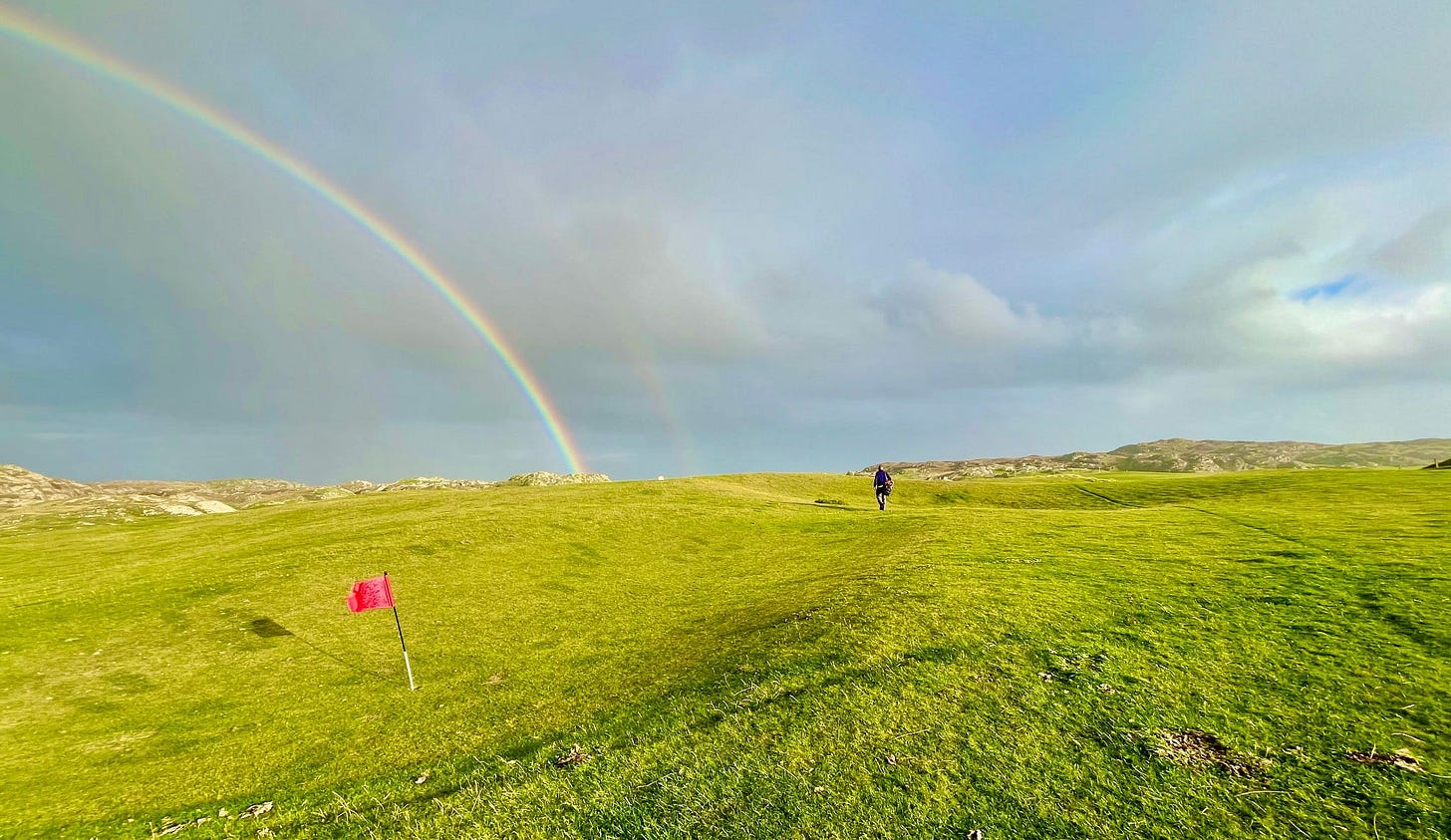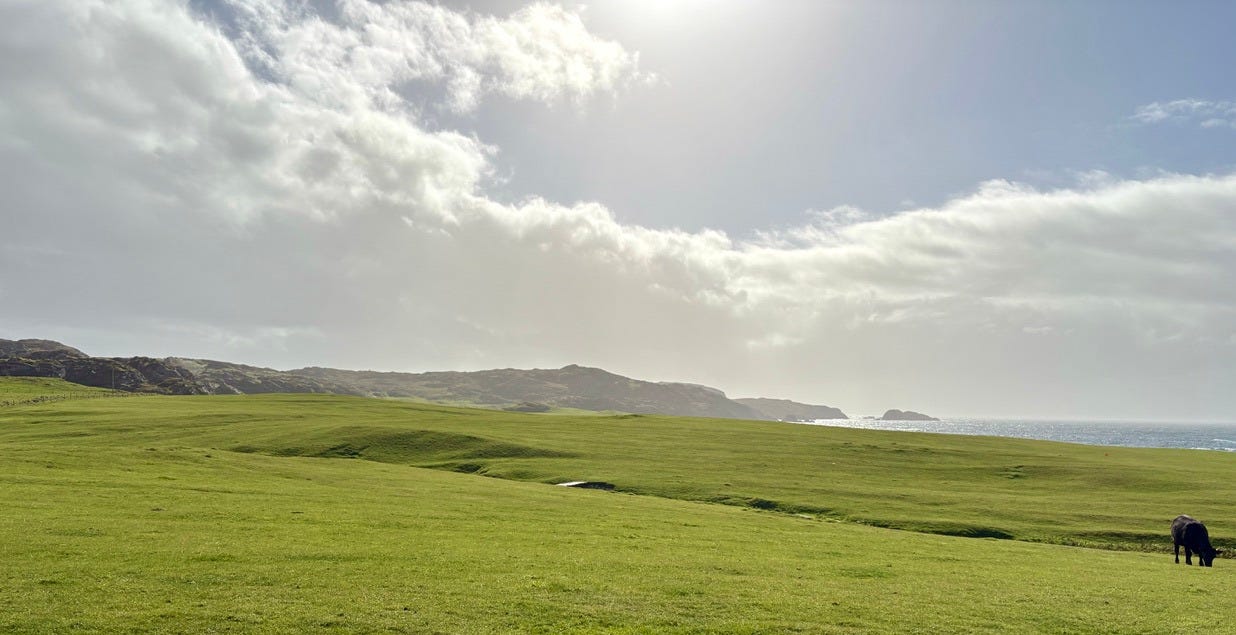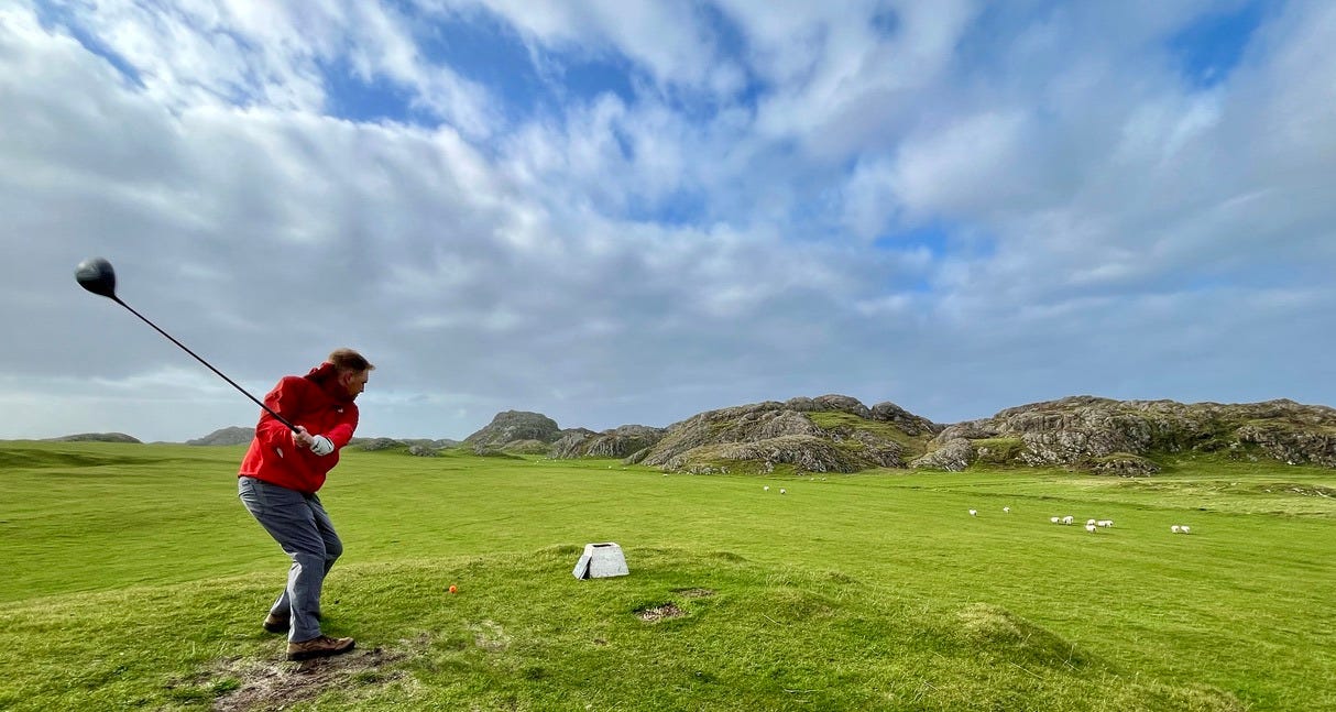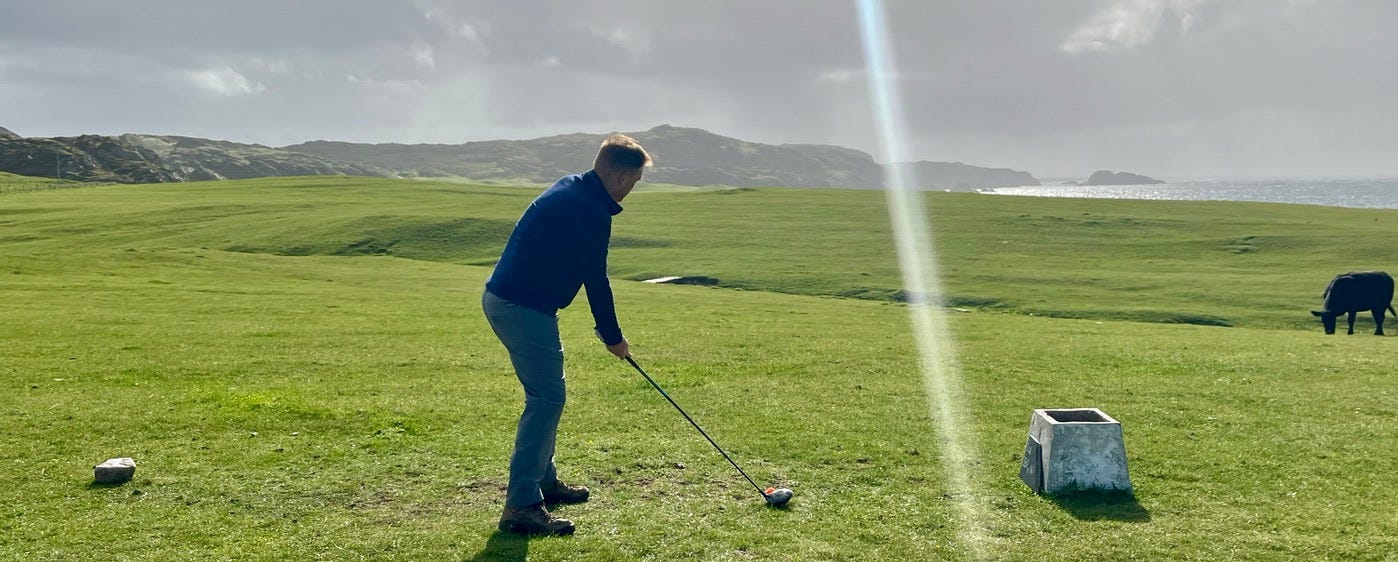 There are a few bonafide tourist attractions on the island, and most of the visitors are pilgrims visiting the Iona Abbey. But the main attraction if you ask me is the island’s natural beauty. There are plenty of sandy beaches you’ll have all to yourself if you’re willing to walk a bit. Hiking up mountains and through valleys was genuinely delightful. One afternoon we went to see a concert, which was just a musician that lives on the island and plays small shows for free at the village hall. But I came here for the golf course.